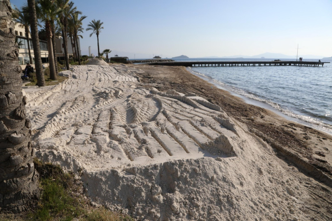 Bodrum Belediyesi'ne Bahçelievler Mahallesi Şevket Sabancı Caddesi'ndeki bir turizm tesisinin sahile beyaz kum döktüğü ihbarı yapıldı.
