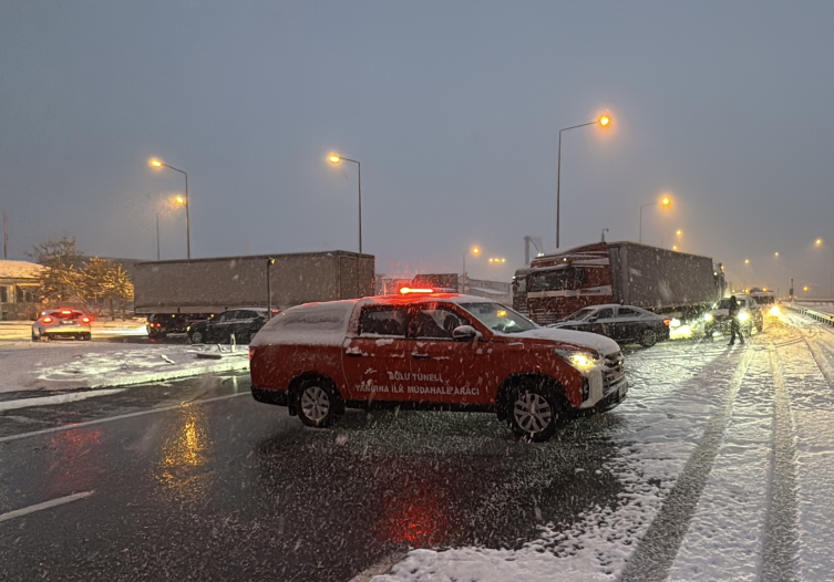 Kar yağışının etkili olduğu otoyolun Bolu Dağı Tüneli kesimi viyadükler mevkiinde tır, hafif ticari araç ve otomobillerden oluşan 10 aracın karıştığı zincirleme kaza meydana geldi.