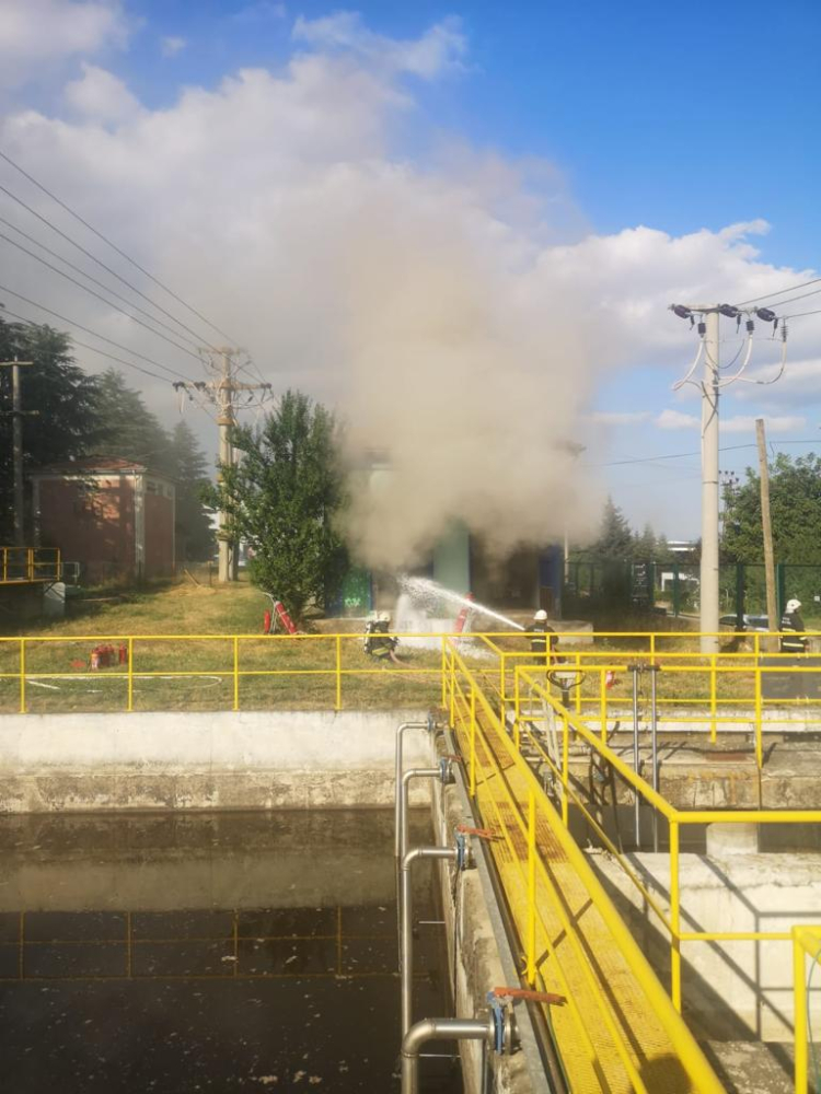 Yukarısoku Mahallesi'nde bir fabrikanın yakınında bulunan elektrik trafosunda henüz belirlenemeyen nedenle yangın çıktı.