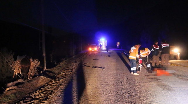 Olay yerine gelen jandarma ve sağlık ekipleri, kişinin, araç çarpması sonucu hayatını kaybeden Ruhi Emre (75) olduğunu belirledi. Emre'nin odun yüklü eşeği de civardaki arazide bulundu.