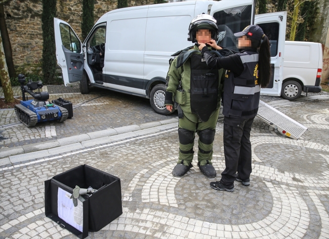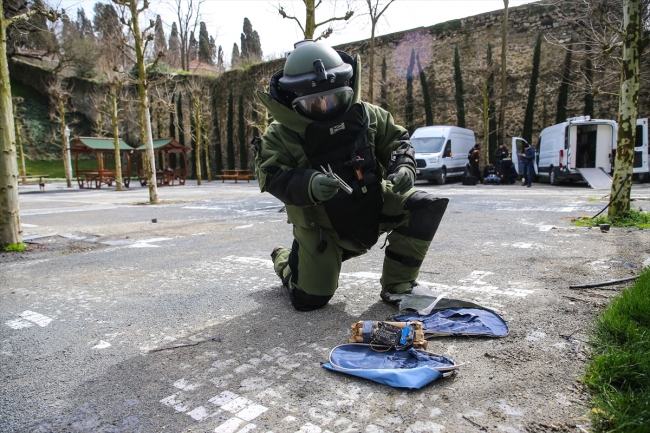 Türkiye'deki 5 kadın bomba imha uzmanından İstanbul'da görev yapan D.K.G. ve K.D., belli bir senaryo çerçevesinde bombalı paket imha tatbikatı gerçekleştirdi.