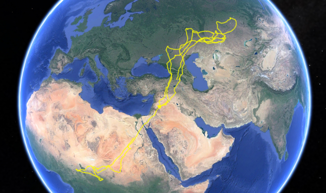 Yaklaşık 2,5 aydır kuzeye doğru göçünü sürdüren kuş, şu an Mısır'ın Al Wahat çölündeki Dakhla Vahası yakınlarında bulunuyor.