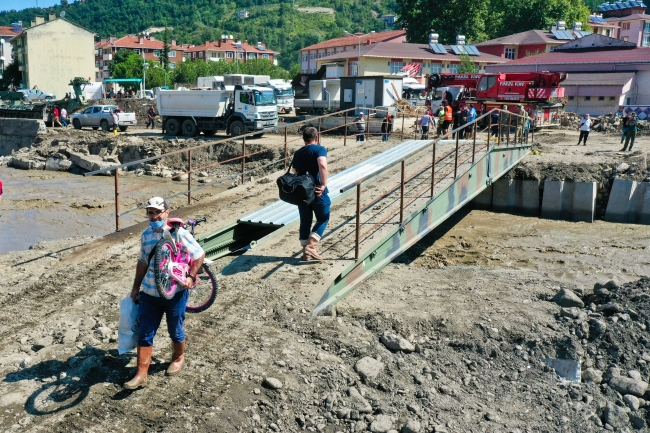 [Fotoğraf: AA]Milli Savunma Bakanlığının sosyal medya hesabından yapılan açıklamada, sel felaketinin yaşandığı Sinop ve Kastamonu'da, yıkılan köprülerin yerine kullanılması ve geçişlerin sağlanabilmesi için 2 yatay kaydırmalı köprü tankı ile 3 sabit köprü aracı gönderildiği aktarılmıştı.