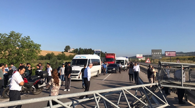 Karayolunun ulaşıma kapanmasının ardından iki yönde de kilometrelerce araç kuyruğu oluştu.