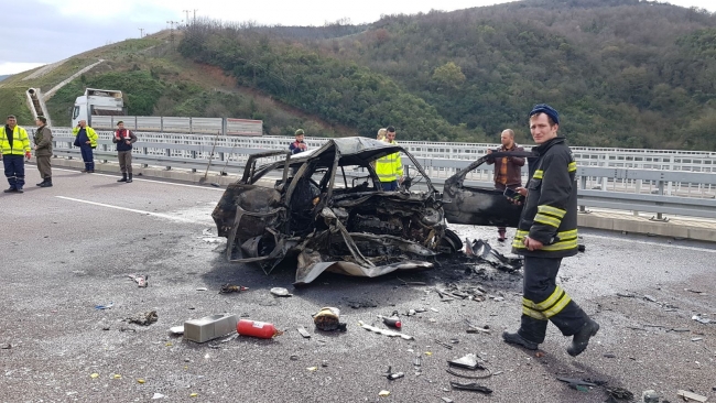 Ters şeritten geldiği iddia edilen 16 M 0301 plakalı otomobil, kendi şerinde ilerleyen 34 KR 8707 otomobil ile çarpıştı. Çarpışma sonucu ters şeritten gelen otomobil alev almaya başladı. Aracın içinde bulunan 2 kişi yanarak can verdi.