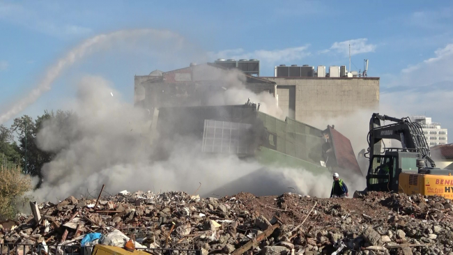Binanın yıkımı drone ve farklı açılardan çekilen kameralarla görüntülendi.