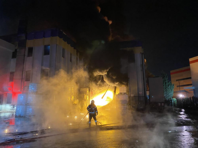Bursa'nın Nilüfer ilçesinde bir fabrikada yangın çıktı. Zaman zaman patlamalara sebep olan yangın, itfaiye ekiplerinin saatler süren çalışması sonucu kontrol altına alındı.https://t.co/ssVBizJceY pic.twitter.com/5o9URMvPK6