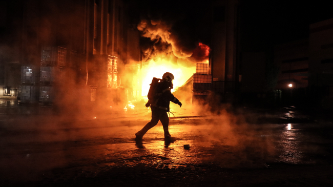 [Fotoğraf: AA]Geniş güvenlik önlemlerinin alındığı bölgede, fabrikanın yakınına itfaiye ekiplerinin dışında yaklaşılmasına izin verilmedi.