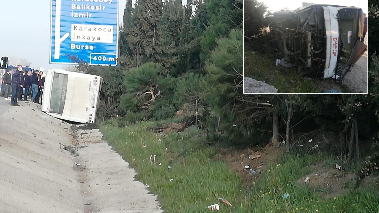 Ali Erdemir idaresindeki otobüs, Bursa-Balıkesir kara yolunun Karakoca mevkisinde devrildi.
