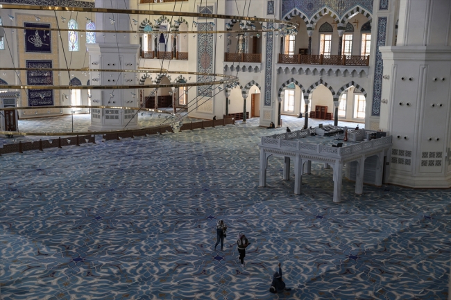 Pandemi sebebiyle maske-mesafe ve temizlik kurallarına aşırı derecede dikkat ediyoruz. Sırf bu iş için 25 kadar insan çalışıyor. Oluşturulan mesafe çizgileriyle şu an her cuma 5-6 bin insan camide namaz kılıyor. Havaların ısınmasıyla avluyu da kullandığımızda 8-10 bin kişi burada cuma namazı kılabilecek."