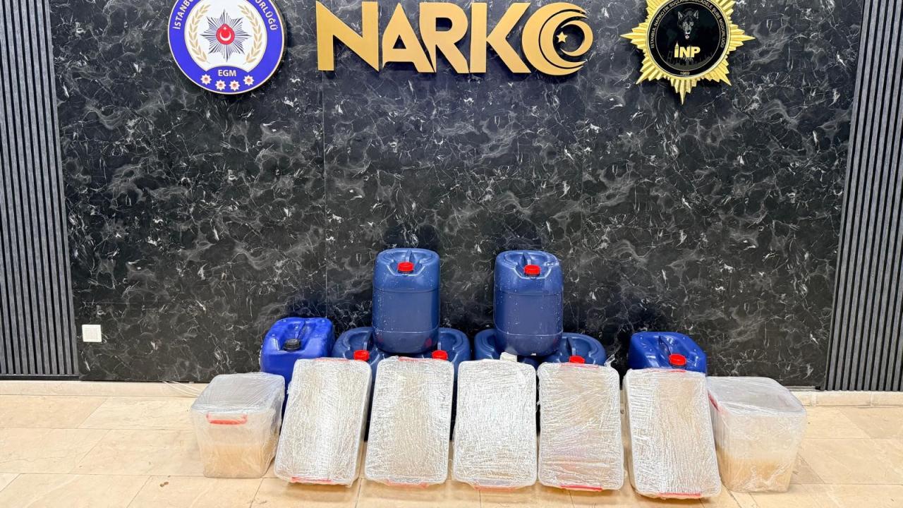 Ekipler, Büyükçekmece ilçesinde tespit edilen bir adrese düzenlediği operasyonda, 225 kilo 650 gram sıvı, 59 kilo 200 gram kristal metanfetamin olmak üzere toplam 284 kilo 850 gram sentetik uyuşturucu ele geçirdi.