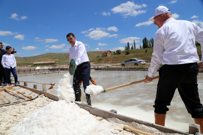 Daha sonra bölgedeki Fadlum Tuzlası'nın açılışını yapan Ayhan, Bilgin ve beraberindekiler, tuzlada tuz hasadı yaptı.
