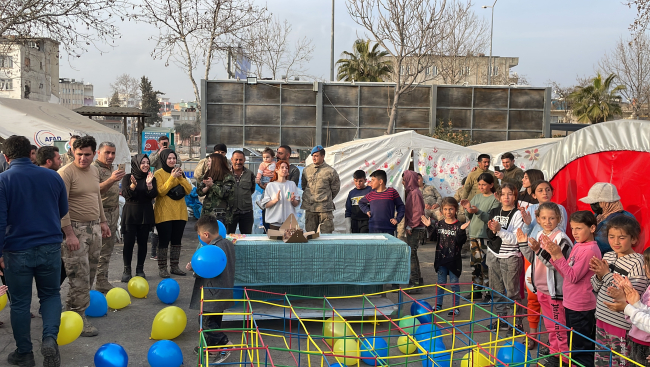 Kentin ciddi bir deprem yaşadığını belirten Kılınç, "Kentte birçok vatandaşımız şimdilik çadırda yaşamını sürdürmektedir. Bizler sürekli olarak burada vatandaşlarımızı ziyaret ediyor, onların ihtiyaçlarını gidermeye çalışıyoruz. Ziyaretimizde bir çocuğumuzun doğum gününün olduğunu gördük ve ona pasta alarak süpriz doğum günü etkinliği düzenledik" dedi.
