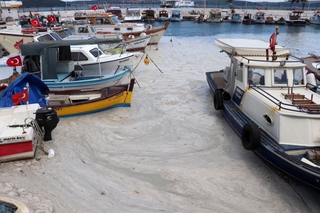 Çevre ve Şehircilik Bakanlığı'nca 'Marmara hepimizin' sloganıyla başlatılan müsilaj temizliği, Çanakkale’de Yat Limanı içinde devam etti.