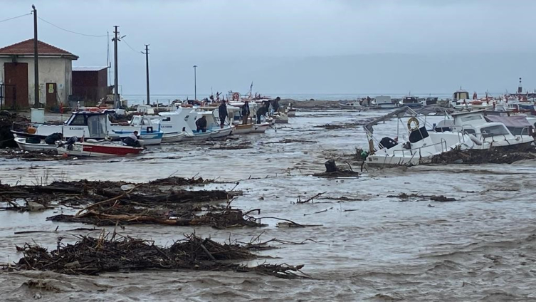 Çok sayıda tekne taşkından zarar görürken mal sahipleri bölgeye gelerek teknelerinin iplerini sağlamlaştırdı.