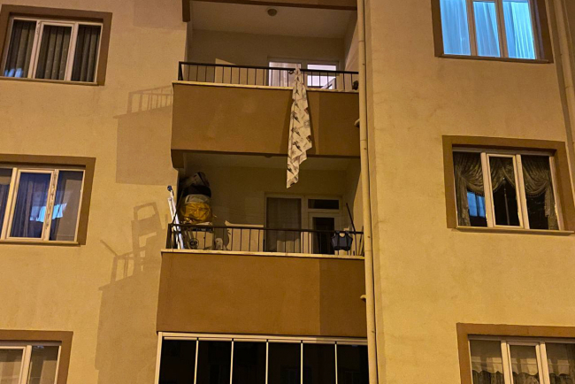 Bir süre sonra balkon demirine çarşaf bağlayarak alt kata inmeye çalışan C.Ö, düşerek ağır yaralandı.