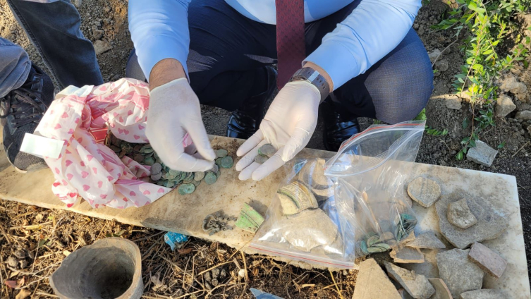Bu sırada, cenazenin defnedildiği toprak üzerinde sikke ve seramik parçaları görenler durumu jandarma ve Tarsus Müze Müdürlüğüne bildirdi.