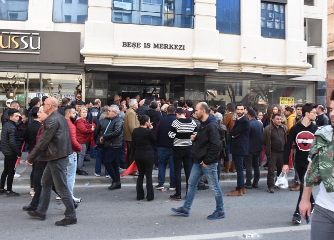 Suat Nezir lehine slogan atan ve CHP İzmir İl Başkanı Deniz Yücel'i istifaya davet eden grubun, parti binasına girmesine polis izin vermedi.