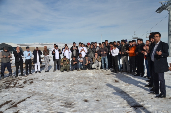 Tüm hazırlıklar tamamlanmasına rağmen kar yağmadığı için sezonu açamayan otel işletmecileri, çalışanları ve kayak hocaları, oteller bölgesinde piste çıkarak "kar duası" etti.