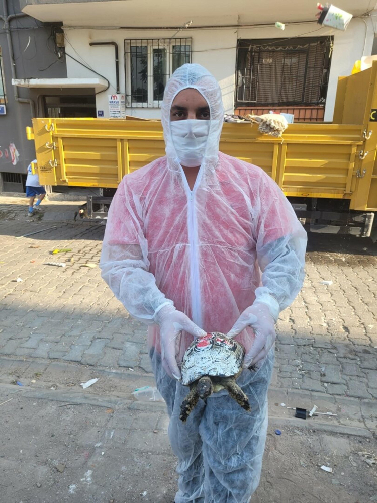 Evde kedi ve kaplumbağa olunca Aydın Büyükşehir Belediyesi ekiplerine de bilgi verildi.