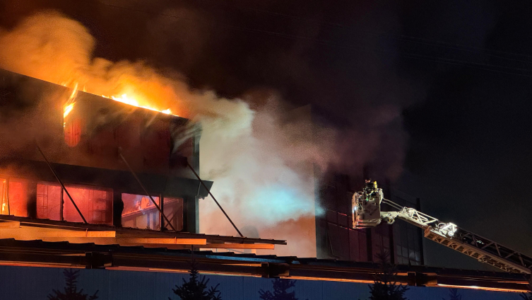 Alevlerin tamamen sardığı, ara ara patlamaların gerçekleştiği fabrikaya ekiplerin müdahalesi sürüyor.