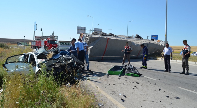 Kazada otomobil sürücüsü ile beraberindeki eşi Sibel (44) ve kızı Ahsen Ömür (14) olay yerinde hayatını kaybetti. Otomobilde bulunan Cihan Ömür (19) ile devrilen tırın şoförü Salep yaralandı.
