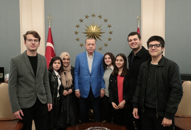 Adana Ticaret Odası Anadolu Lisesi öğrencilerini çaya davet eden Erdoğan, öğrencileri Cumhurbaşkanlığı Külliyesi'ndeki konutunda ağırladı.