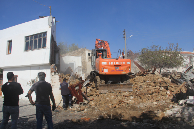 Yerinde yapılan incelemelerde, can ve mal güvenliği açısından tehlike oluşturan bu binaların yıkımı için ekiplerce çalışma başlatıldı.