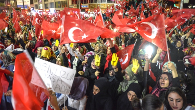 Şehitler için Kur'an-ı Kerim okunan etkinliğe ellerinde Türk bayrakları ve Cumhurbaşkanı Recep Tayyip Erdoğan'ın posterleriyle katılan vatandaşlar, çalınan şarkı ve marşlara eşlik etti.