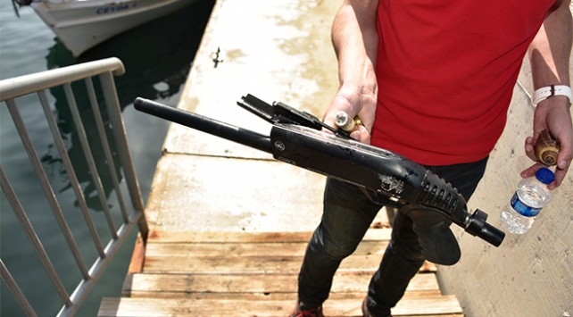 Öte yandan temizlik çalışmaları devam ettiği sırada bir dalgıç, denizde bir pompalı tüfek buldu. Sığ bölgeden çıkartılan tüfek, muhafaza altında alındı. İçerisinde dolu fişeklerin de olduğu tüfek, güvenlik güçlerine teslim edilmek üzere kıyıya getirildi.
