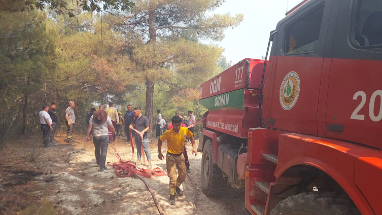 Yangına müdahale çalışmalarına itfaiye ve jandarma ekiplerinin yanı sıra 1 helikopter, 10 arazöz, 3 iş makinası, 2 dozer ile 4 itfaiye aracı destek verdi.