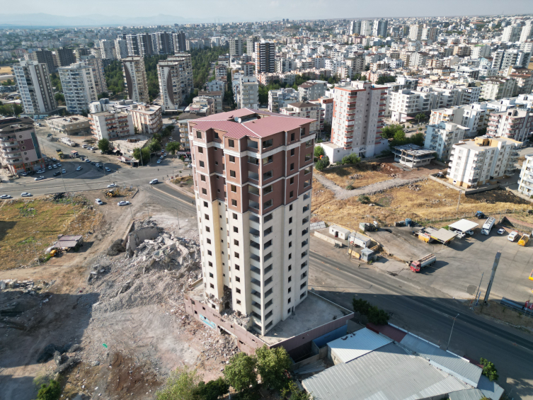 Bina, iş makineleriyle yürütülen çalışmalar sonucu kontrollü şekilde yıkıldı.