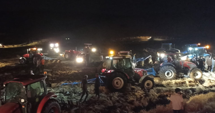 Civardaki köylüler de bölgeye traktörlerle geldi. İtfaiye ekipleri ve yaklaşık 100’e yakın traktörün bulunduğu tarlada söndürme çalışmaları yapıldı.