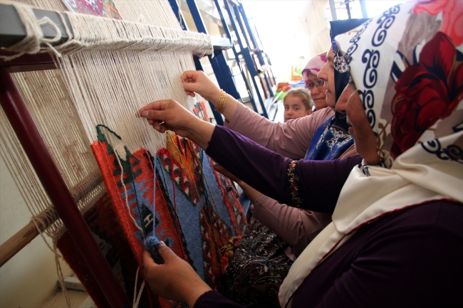 Anneannesi ve babaannesinin köyde dokudukları kilimle ev ekonomisine katkı sağladığını belirten Bulut, "Bu geleneği yaşatmaya ve öğretmeye çalışıyoruz. Daha önce böyle atölye yoktu, ev ortamında yapıyorduk" dedi.