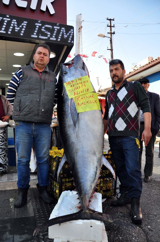 Orkinos balığının etinin lezzetli ve fiyatının uygun olduğunu ifade eden Kaynar, "Bu balıkların ağırlığı bir tona kadar ulaşabiliyor. Kılçıksız bir balıktır, orta kemiği vardır. Eti lezzetlidir. Fırında veya tavada pişirilmesi gerekiyor." dedi.
