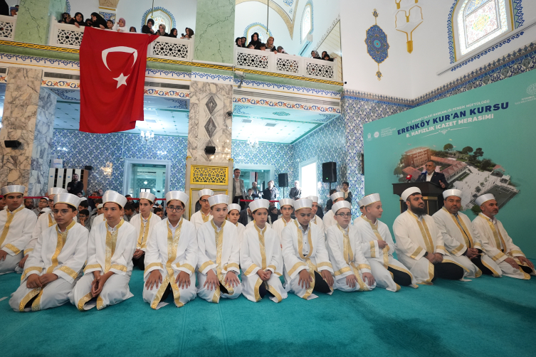 Erenköy Kur'an Kursu'nda eğitimini tamamlayan 40 hafız için Pendik Müftülüğü tarafından Çarşı Camii'nde "Erenköy Kuran Kursu 8. Hafızlık İcazet Merasimi" düzenlendi.