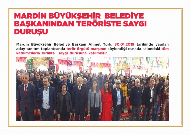 6- Mardin Cumhuriyet Başsavcılığınca 2019/1642 sayılı dosyasında “Silahlı Terör Örgütüne Üye Olma, Terör Örgütüne Bilerek ve İsteyerek Yardım Etme” suçlarından soruşturma yürütülen Ahmet TÜRK Mardin Büyükşehir Belediye Başkanı olmuştur.