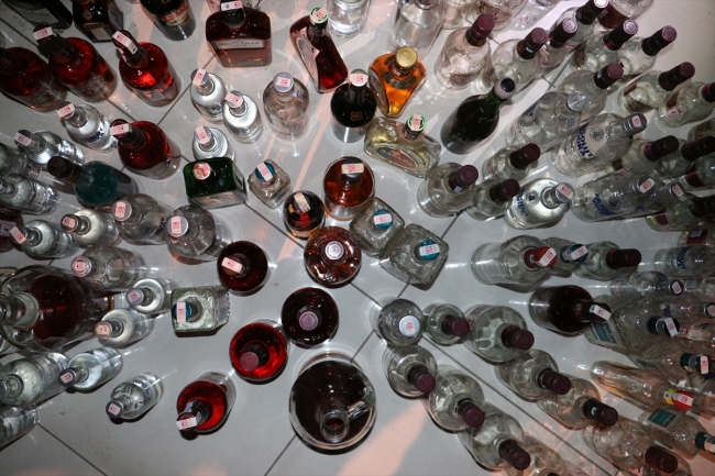 Operasyonda, iş yerlerinde yapılan aramada, farklı markalarda 77 şişe kaçak içki, 49 boş içki şişesi ve 327 adet cinsel içerikli ürün ele geçirildi.