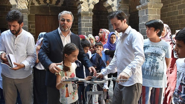 Diyarbakır Büyükşehir Belediyesince, merkez Sur ilçesindeki camilerde yaz Kur'an kursu eğitimini tamamlayan öğrencilere, bisiklet hediye edildi.