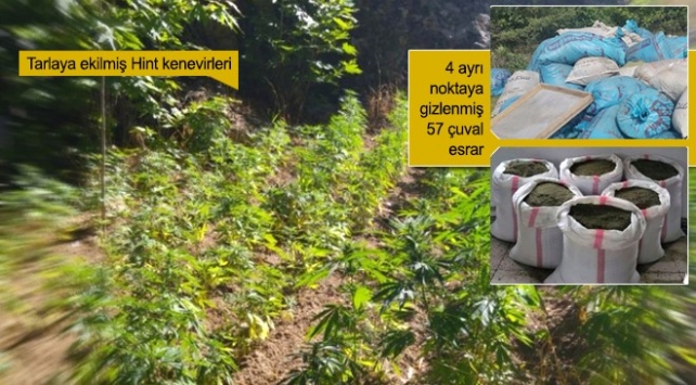 Diyarbakır'ın Lice ve Eğil ilçelerinde düzenlenen narkoterör operasyonlarında, bir ton 158 kilogram esrar ile 52 bin kök Hint keneviri ele geçirildi.