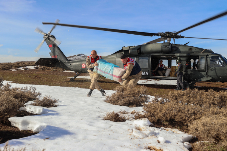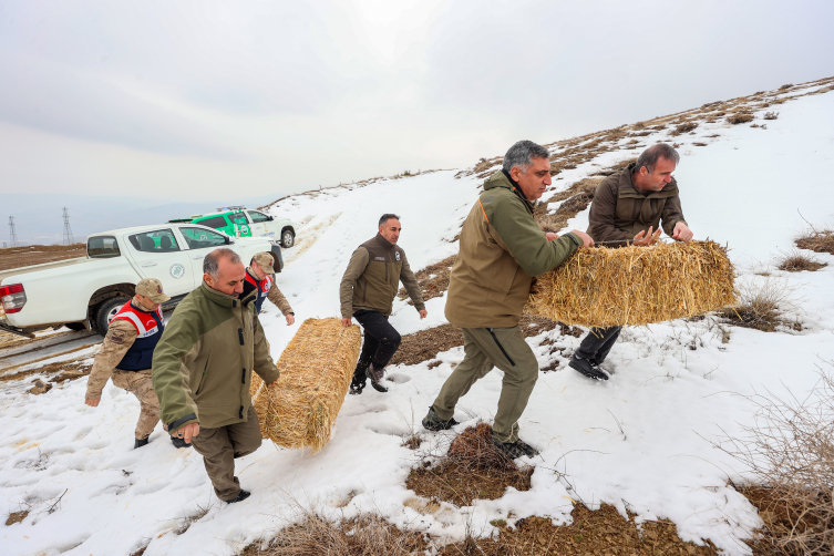 Doğa Koruma ve Milli Parklar Şube Müdürlüğünden temin edilen tonlarca saman, yonca ve yem, zorlu arazi koşulları ve kar nedeniyle ulaşım sağlanamayan yerlere helikopterle, karadan ulaşımın sağlandığı bölgelere ise araçlarla bırakıldı.