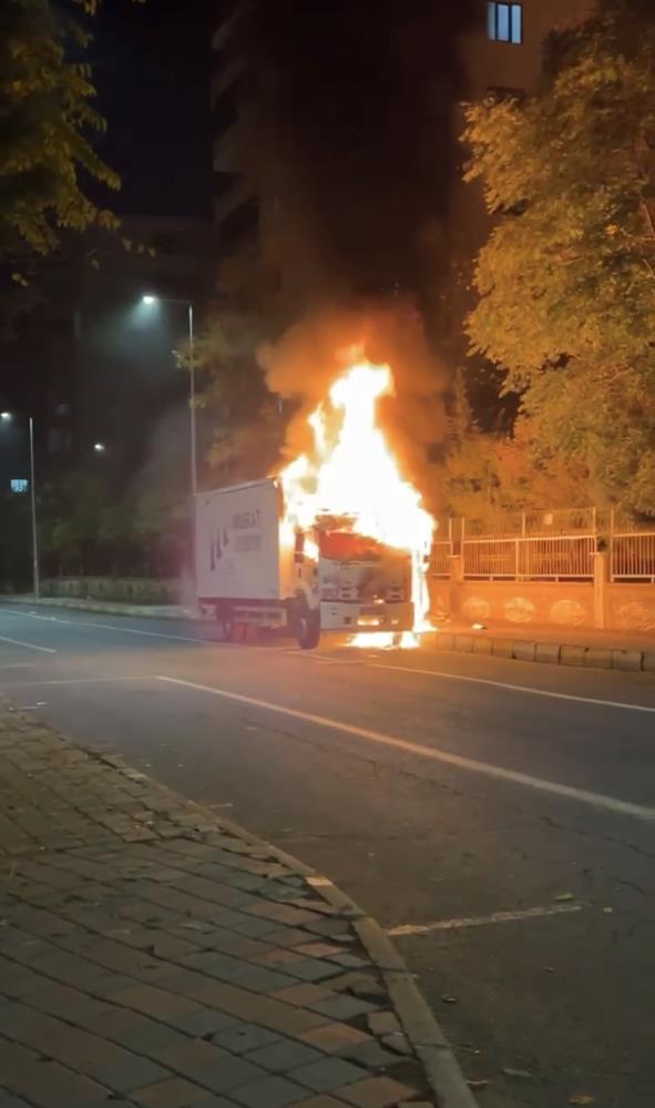 Bağlar ilçesi Bağcılar Mahallesi 1133 Sokak'ta park halindeki tır, henüz belirlenemeyen nedenle yandı.