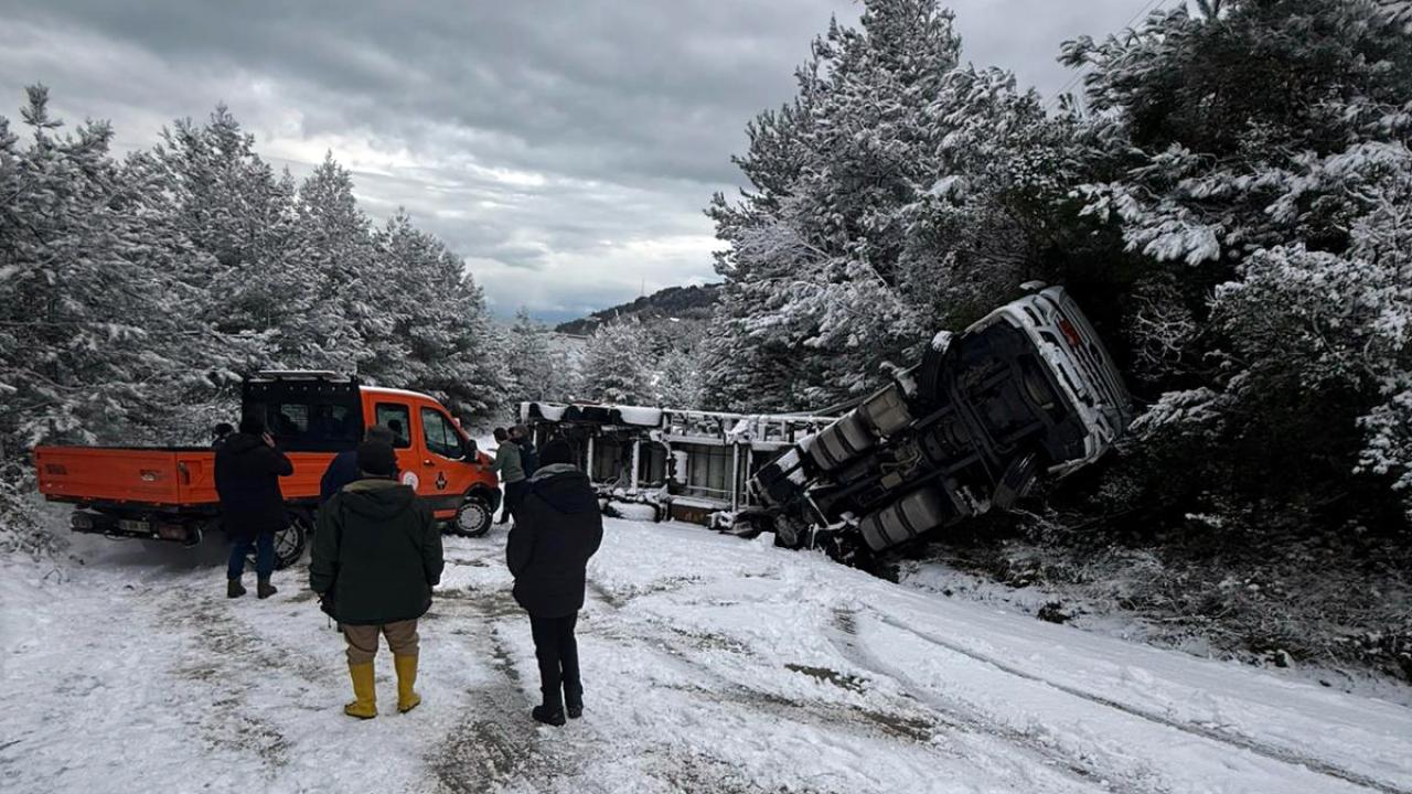 Bozkurt-Abana kara yolunun Darsu köyü mevkisinde Salim Özdemir yönetimindeki plakası öğrenilemeyen boş doğal gaz tüplerinin bulunduğu tır şarampole devrildi.