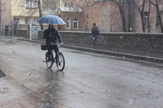 Karla karışık yağmur ve kar nedeniyle çevre yolu ve caddelerde sürücüler, araçlarıyla ilerlemekte güçlük çekti. Bazı vatandaşlar da araçlarının üzerinde biriken karı temizledi.