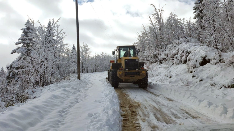 İl Özel İdaresi ekipleri, 5 iş makinesi yardımıyla karla mücadele çalışmalarına devam ediyor.