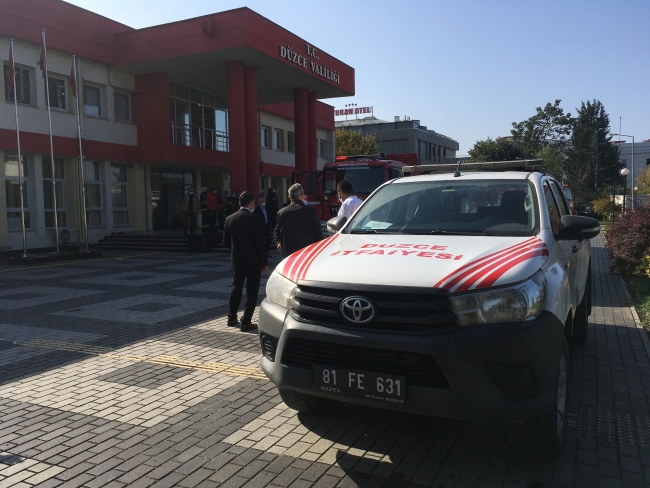 Düzce Belediyesi itfaiye ekipleri gazdan etkilenen idari personeli merdivenli araç yardımıyla camdan tahliye etti.