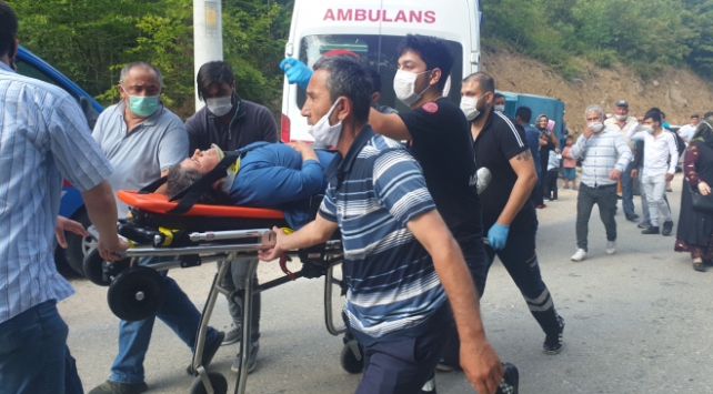 [Fotoğraf: AA]Çok sayıda kişinin yardımıyla dere yatağından çıkarılarak ambulansa alınan yaralılar, Düzce Üniversitesi Araştırma ve Uygulama Hastanesine kaldırıldı.