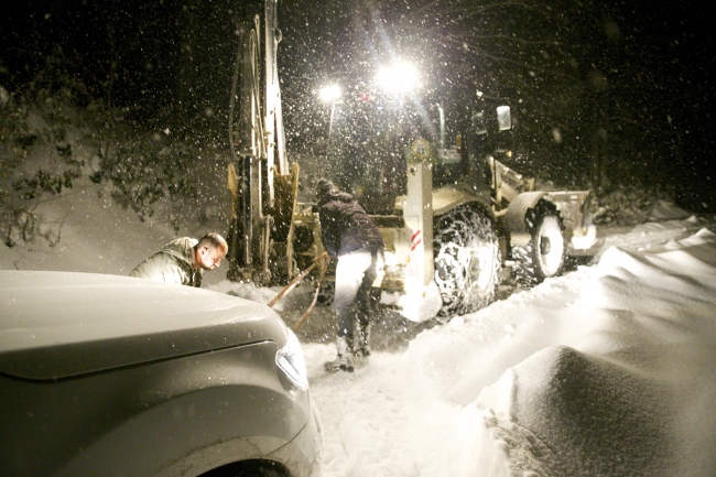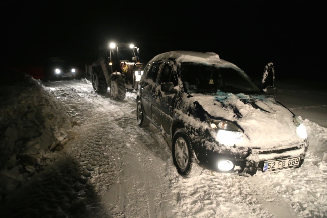 İhbar üzerine iş makinaları ile yola çıkan ekipler, yaklaşık 5 saat süren zorlu yolculuğun ardından yaylaya ulaştı. Ekipler 1,5 metre kar olan bölgede bir vatandaşın traktörünün de yardımıyla mahsur kalan 11 kişinin araçlarını buldu.