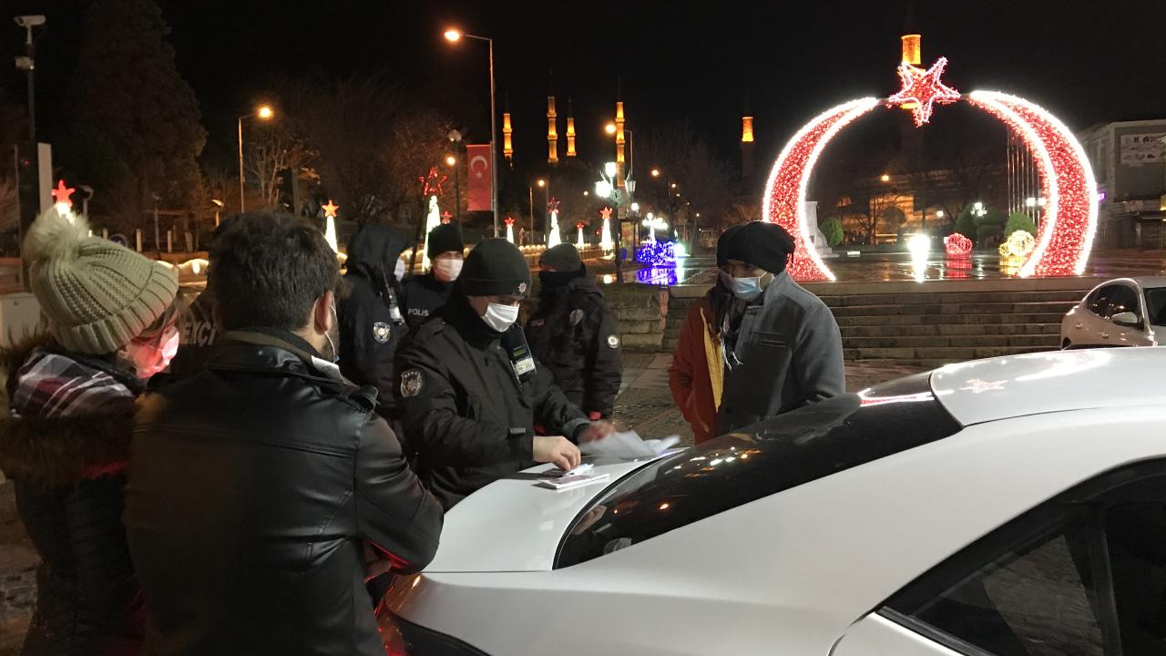 Edirne Emniyet Müdürlüğü ekipleri, kısıtlama kapsamında farklı noktalarda denetim gerçekleştirdi. Trafikte seyreden araçlar durdurularak izin belgeleri kontrol edildi.