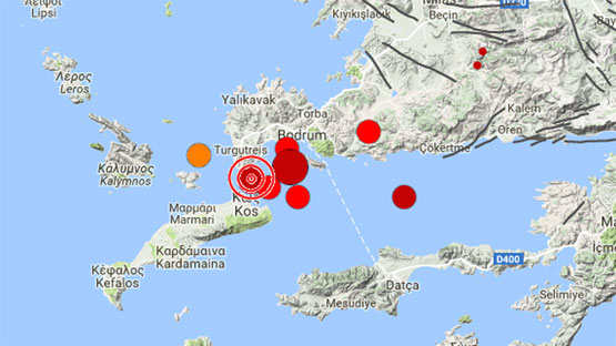 Başbakanlık Afet ve Acil Durum Yönetimi Başkanlığı (AFAD) Deprem Dairesinin tespitine göre, saat 01.31'de Bodrum Orak adası açıklarında yerin 7,8 km altında 6,5 büyüklüğünde deprem meydana geldi.
